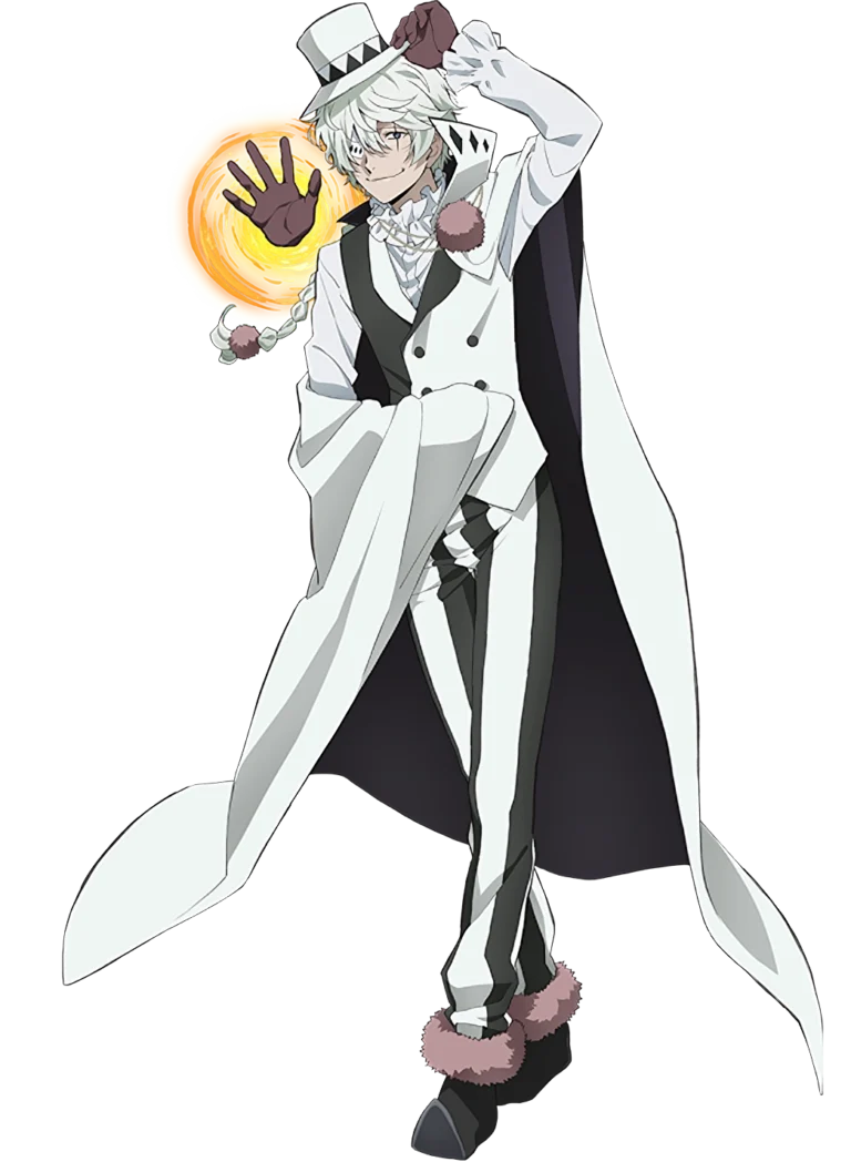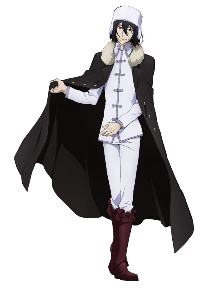 Fyodor uses all his brainpower to beat Dazai; he doesn’t have time for an overly complicated outfit. So, he simply wears a white shirt, a pair of white pants, a jacket draped over his shoulders, and to top it off, his iconic white ushanka hat with a fur collar, paying homage to his Russian heritage.